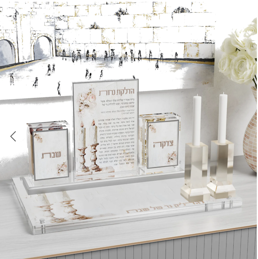 Discover handcrafted lucite Judaica that blends clarity, beauty, and tradition — from elegant challah boards to bencher sets and candle trays.