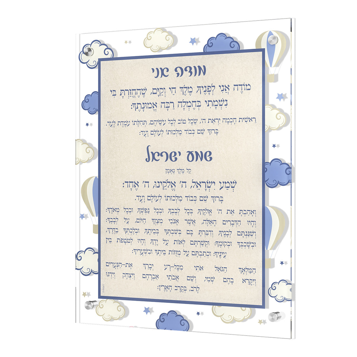 This Cloud themed Modeh Ani & Shema wall plaque will really brighten up your child's bedroom. Clear, large lettering makes this a practical, gorgeous must have addition!