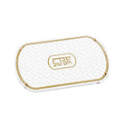 Experience the luxury of our classic Woven Leatherite Challah Board. A stunning leather & Glass Challah board, elegantly crafted with textred luxurious leather, delicately emrboidered enclosed. Complete with a scratch resistant glass topper and available in gold or silver, this is the perfect piece to add to add to your Shabbos or Yom Tov table.