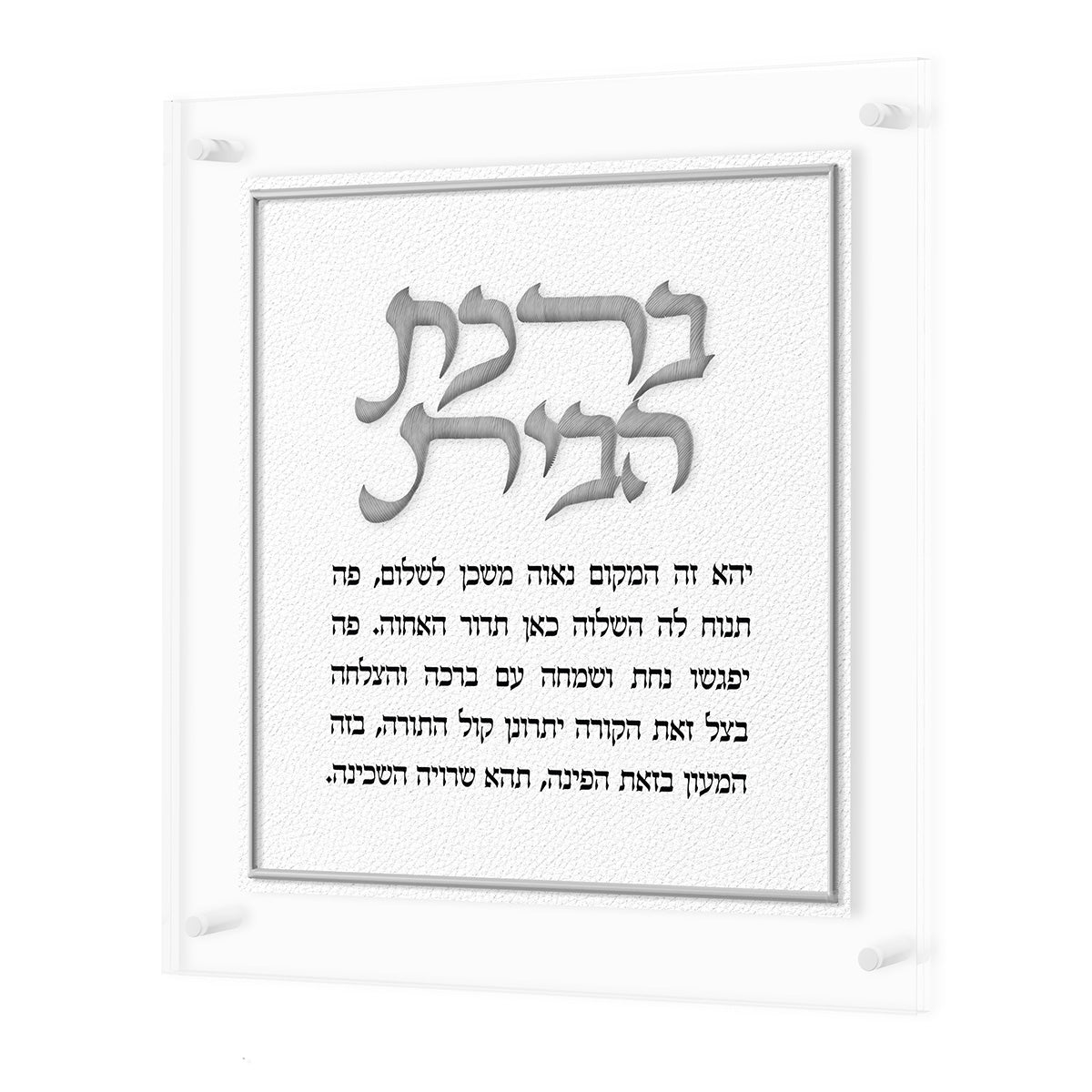 Enrich your home with the luxurious Leatherite Birchas Habayis. Elegantly crafted with leather enclosed between two pieces of Lucite. Its unique design is intricately embroidered onto luxurious leather, creating an exquisite and unparalleled beauty.