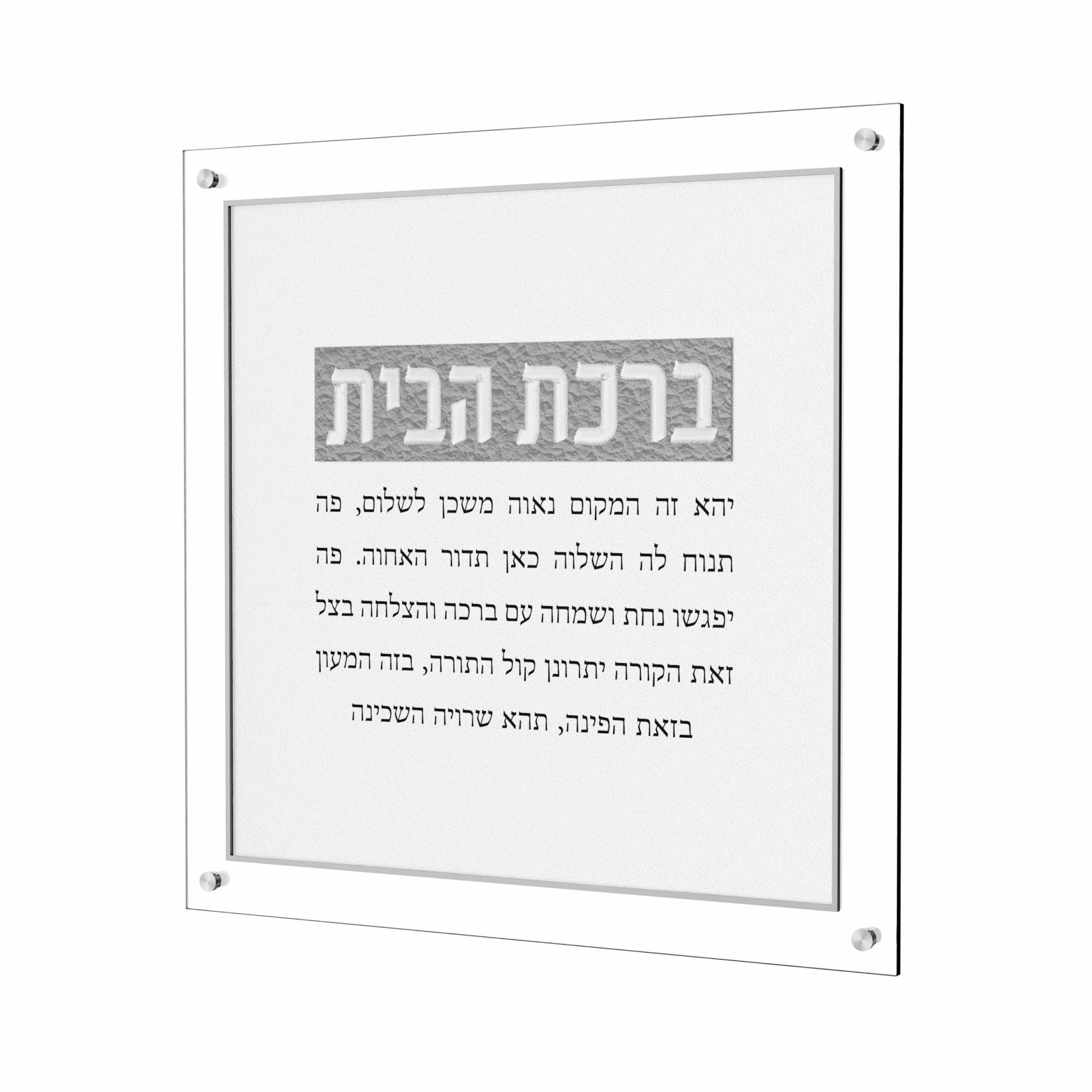 The Leatherite Birchas Habayis v.2 offers a sophisticated blessing for the home, elegantly printed on leather and encased in lucite for lasting beauty. Available in silver or gold, it features a delicate embroidered border and title, combining timeless tradition with refined craftsmanship to enhance your home.