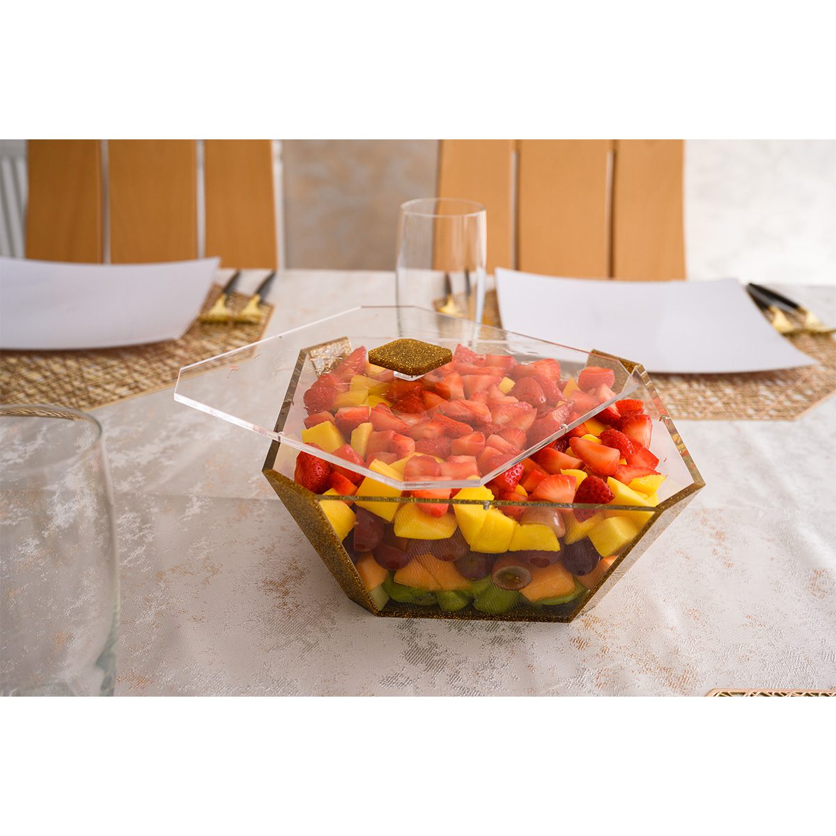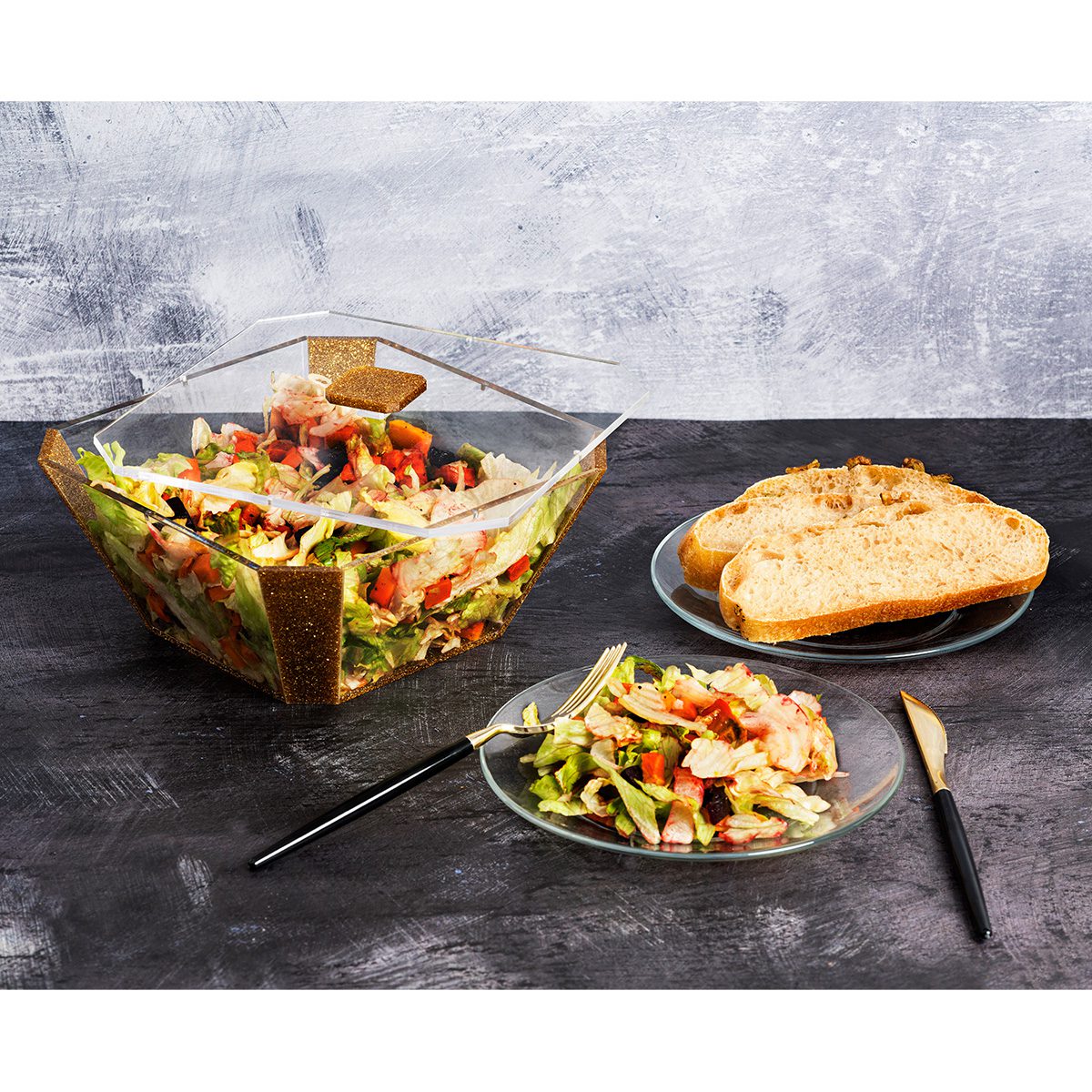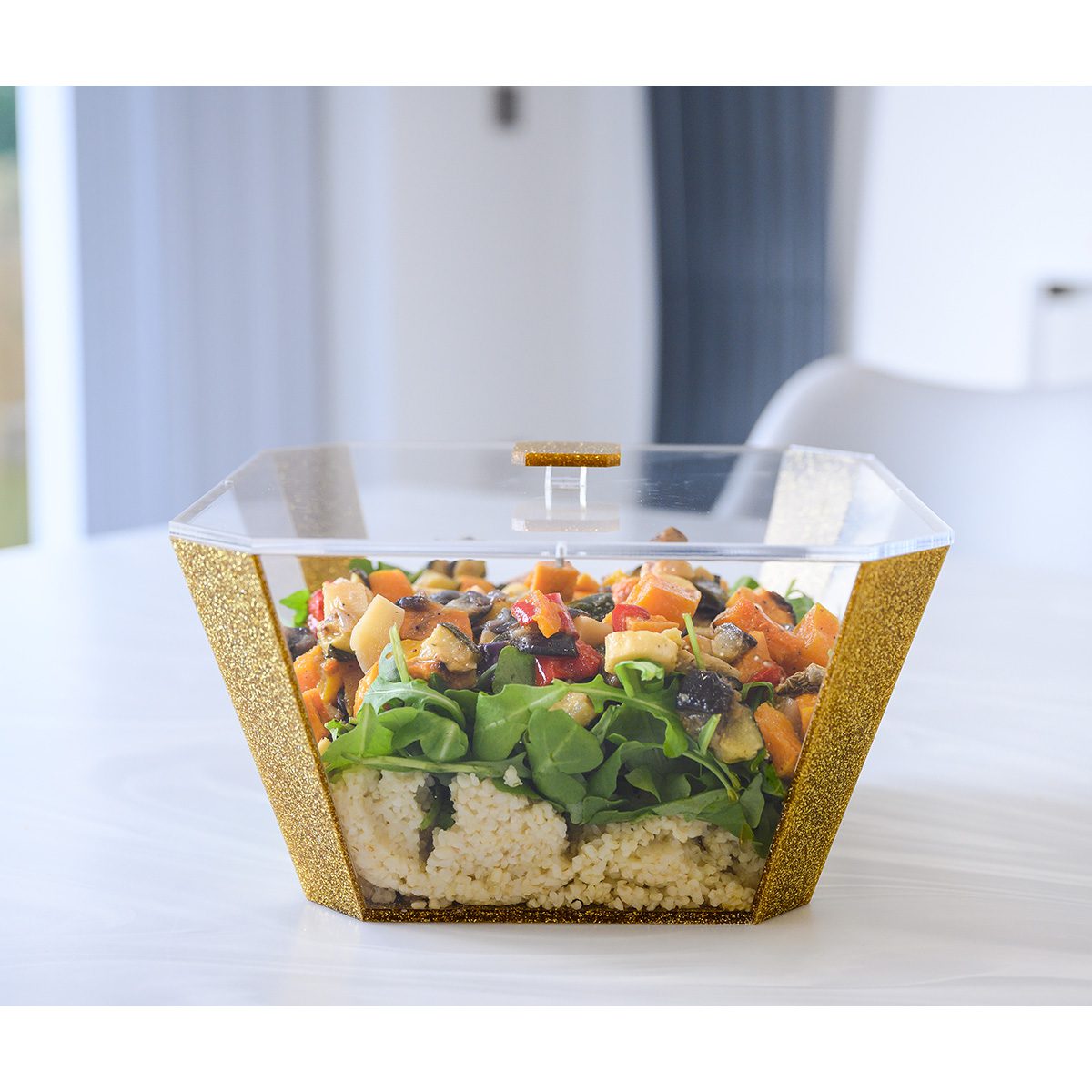 Designed with all your needs in mind, this exquisite acrylic salad bowl comes complete with a magnetic lid to keep your salad fresh from preparation to mealtime – then simply close the lid and place your leftovers in the fridge!