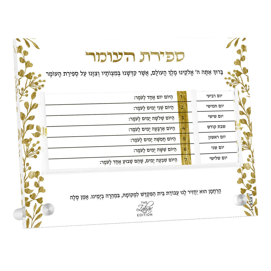 This Gold Leaf Zahav Sefiras Haomer features an elegant and innovative design, ensuring an effortless way to count the Omer year after year.