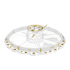 The Golden Branch Simanim Tray is a sophisticated centerpiece for your Rosh Hashanah table. Featuring eight compartments with 3D raised titles, this tray offers a clear and elegant presentation of each of the Simanim. Its swivel base allows effortless access to every section, while the removable honey dish with a matching spoon at the center offers an elegant enhancement. Designed to blend functionality with graceful style, this exquisite tray enhances your Yom Tov table with meaningful detail.